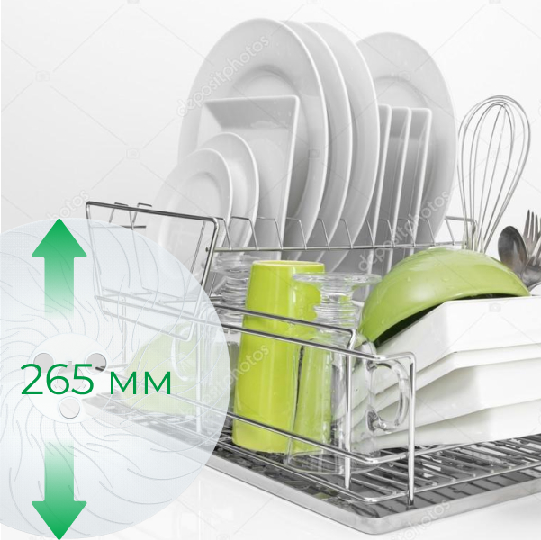 Конструкция мойки включает 20 дисков диаметром 255 мм, которые легко мыть в посудомоечной машине.